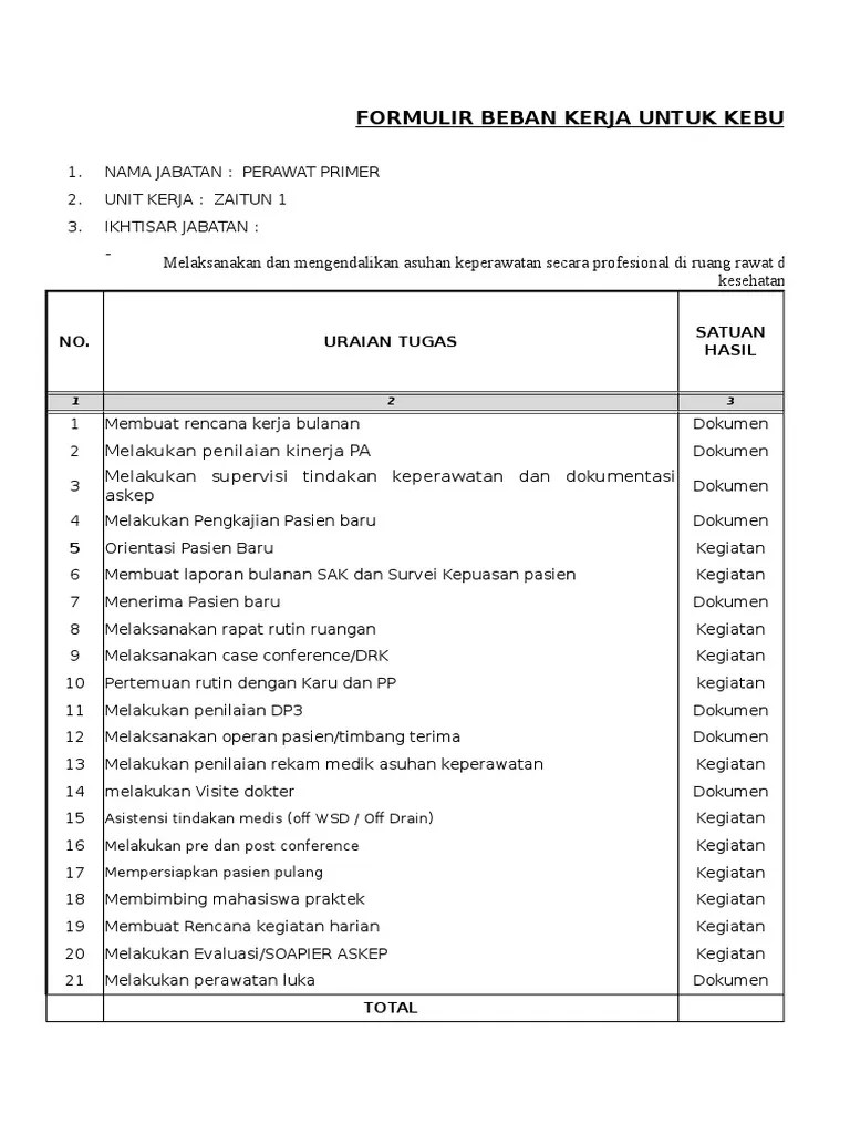 Berikut perhitungan analisis beban kerja berdasarkan format.
